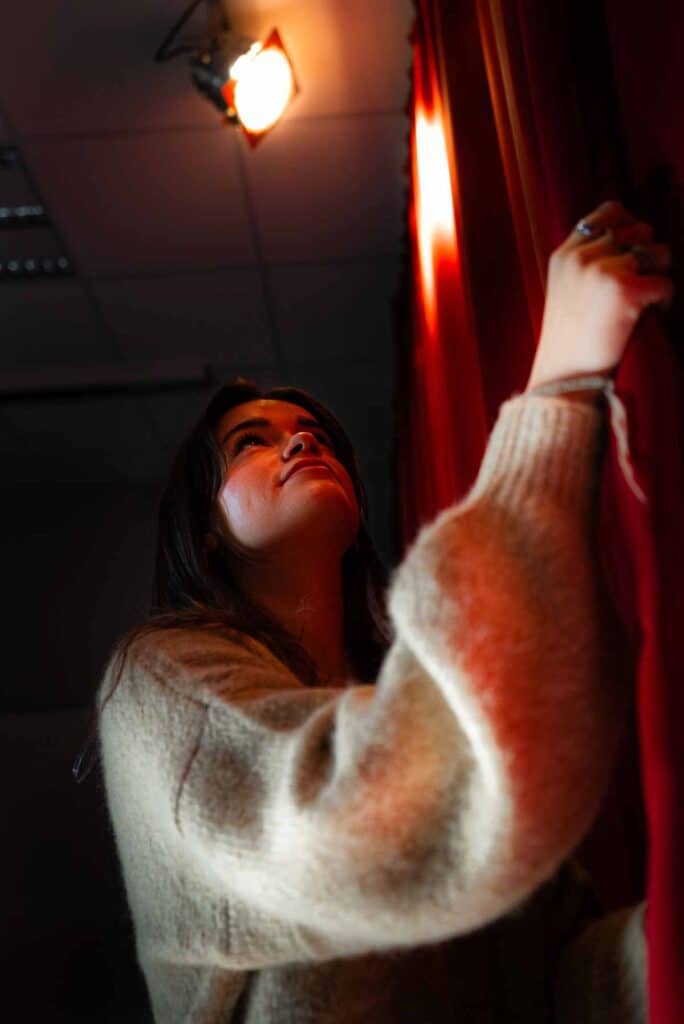 Au-delà de l’adaptation d’un texte à la scène, l’élève s’interroge sur ce qui constitue et caractérise un spectacle, ainsi que sur la relation entre ce spectacle et ses spectateurs. Il découvre et expérimente, par une pratique de mise en scène, toutes les composantes techniques du théâtre.